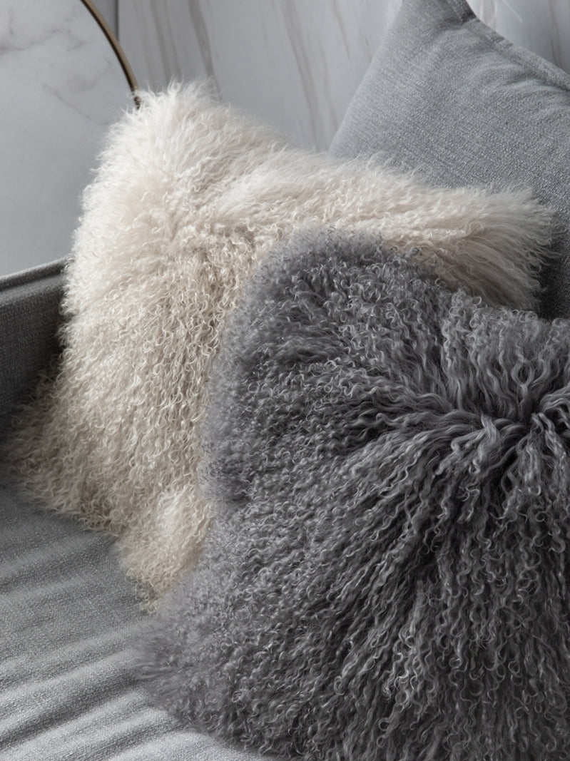 Plush Tibetan Wool Sheepskin Throw Cushion