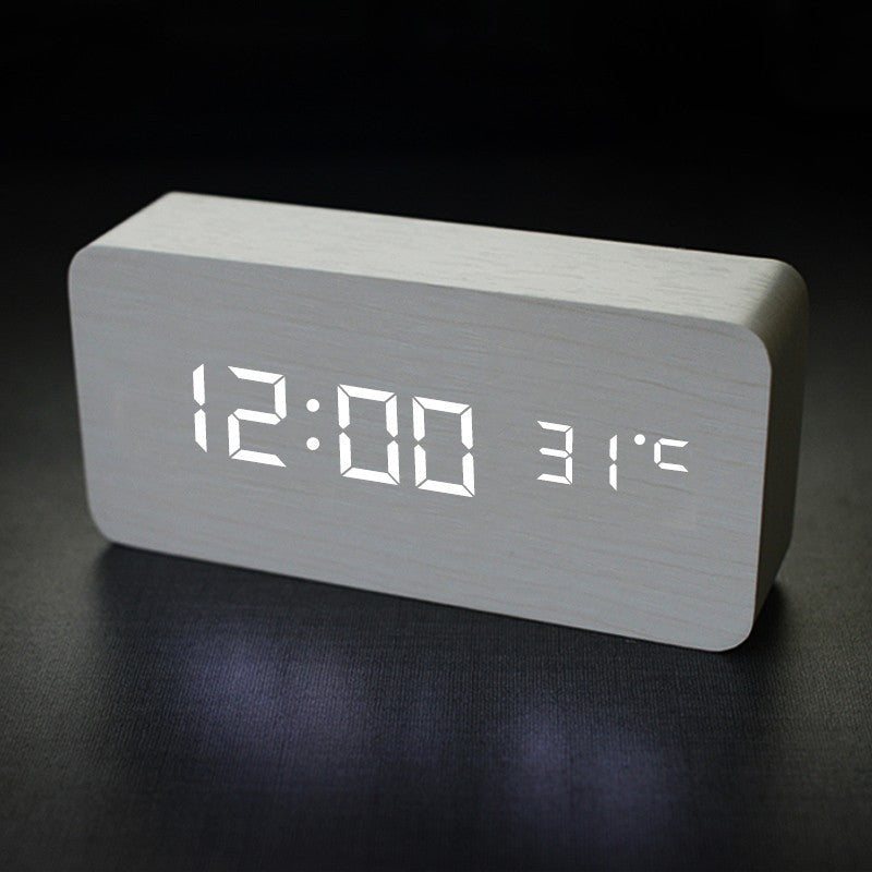 This digital alarm block clock comes in a matt, off-white, wood-look finish. It's block shape and rounded edges give it a modern look that makes a nice addition to your desk, book shelf or besdside table. And with time, alarm, snooze and temperature, it’s a great companion for all things time!
