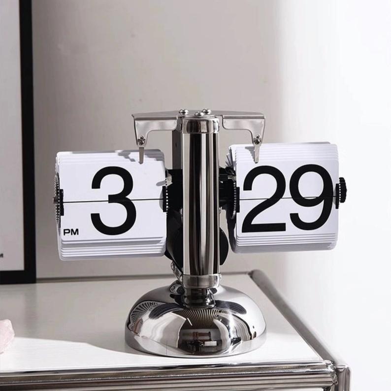 Add a touch of nostalgia to your home or office with our Retro Digital Stainless Steel Flip Down Clock. This unique timepiece combines vintage flair with modern functionality, bringing a classic aesthetic to your space. The clock's classic flip design is inspired by retro flip clocks, featuring automatic page turning every minute. Watch as the numbers flip with a satisfying click, recalling a bygone era. This distinctive feature adds a touch of whimsy and visual interest to any room. For effortless time-telling, the clock boasts large, bold digits that are easy to read from a distance. This makes it perfect for bedrooms, living rooms, offices, and kitchens - anywhere you need to keep track of time.