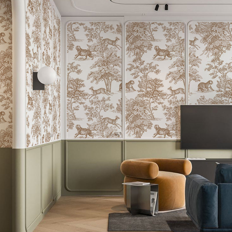 French Blue is a lovely smokey grey blue. This shade of blue has stood the test of time. To exude a fresh and bright feeling, pair it with colors such as geranium pink, yellow, or daisy orange. Our French Blue Forest Wallpaper with animal and forest illustrations can be used anywhere, but it's especially nice as a feature wall in the living room, bedroom, or home office. This wallpaper is available in four different color schemes, each of which is made up of a careful balance of subdued colours and subtle tones. Here's our suggestion: choose one wall in your living area and make a statement piece of this stunning wall mural. Deciding how much you need is easy - just follow the instructions below and we'll custom size to your wall and ship it free worldwide.