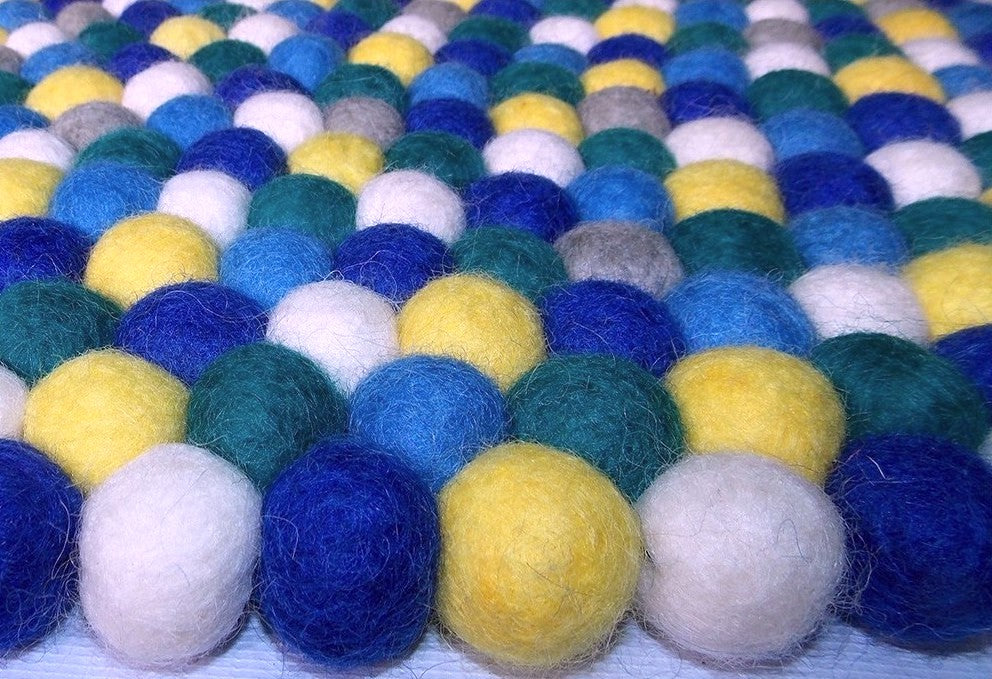 Blue & Green Felt Ball Rug