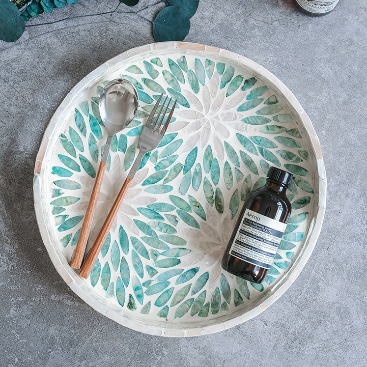 We, as human beings, constantly seek beauty. This is why most people hosting parties pay as much attention to serving the food as preparing it. Our Mother of Pearl Serving Tray in floral patterns not just looks visually pleasing, it lends an aesthetic touch to your delicacies by enhancing their look. Intricately handcrafted using mother of pearl, these serving trays are available in three patterns and sizes. Whether it is a simple cup of coffee or a fancy drink, these trays make sure you serve in style.
