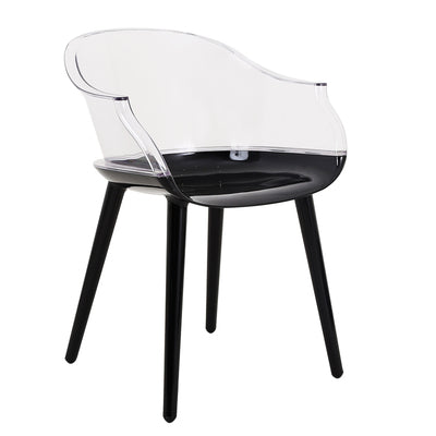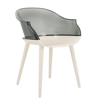 The Cyborg chair takes the elegant form of a more traditional dining or lounge chair but with the functional, modern material of acrylic. Designed by Dutch designer Marcel Wanders only in 2010, it's fast becoming a design classic. Our quality reproduction is available in white/clear, black/smokey acrylic.
