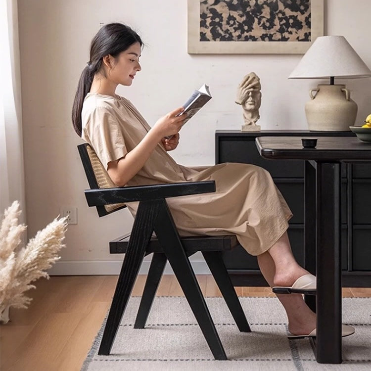 • Materials: Rubber wood frame with a choice of solid wood, rattan or vegan leather seat