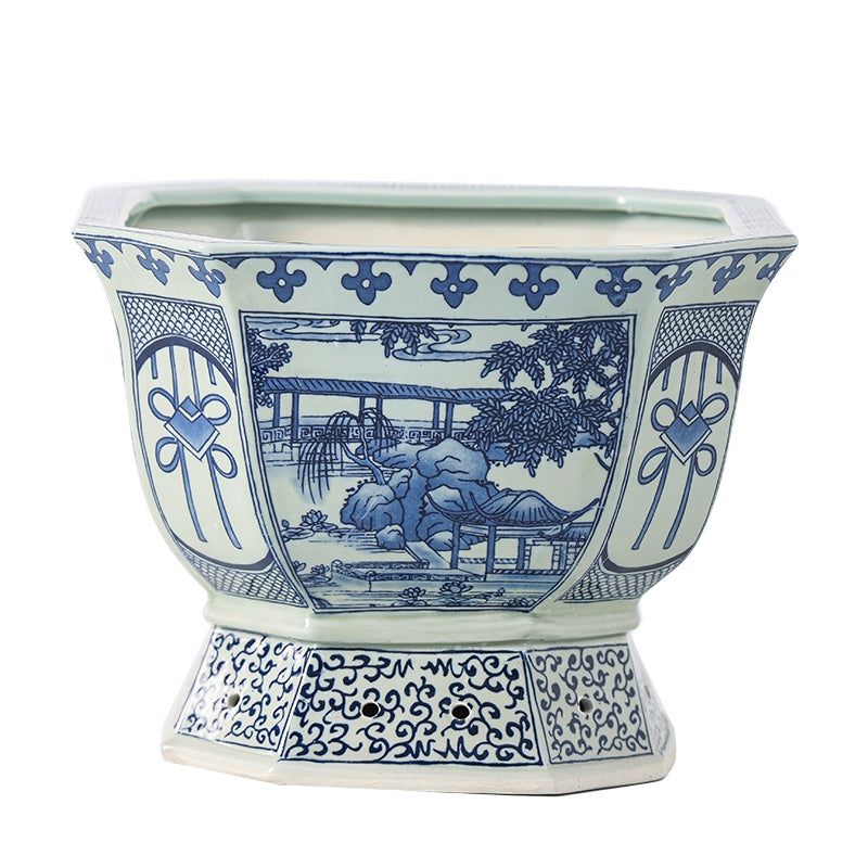 Blue and White Chinese Ceramic Plant Pot