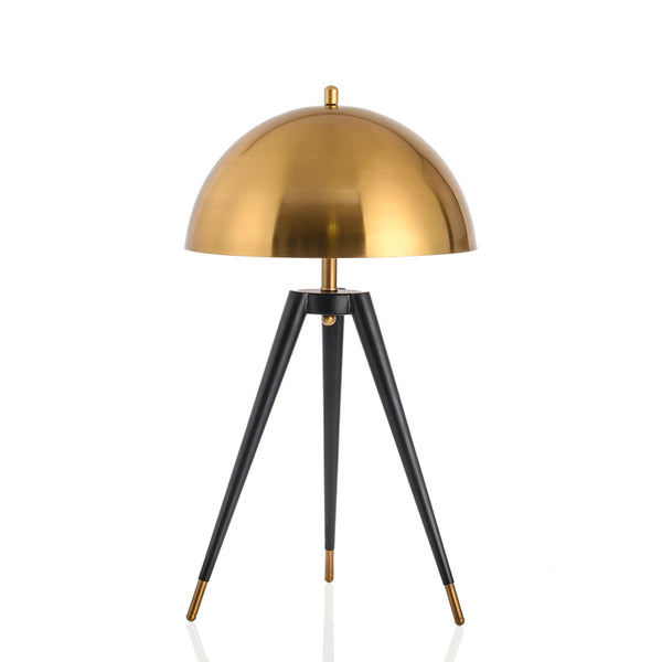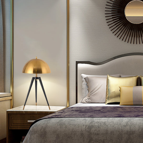 This is definitely a statement piece. This unique table lamp reminds us of something from outer space, with its cute mushroom shaped half sphere shade and tripod base. We love the combination of black and gold, and the eye catching form of tripod lamps over more traditional lamps. It has a kind of retro modern aesthetic that we see working well with both elegant luxe and eclectic interiors. Available with either a HK/UK or US power plug.