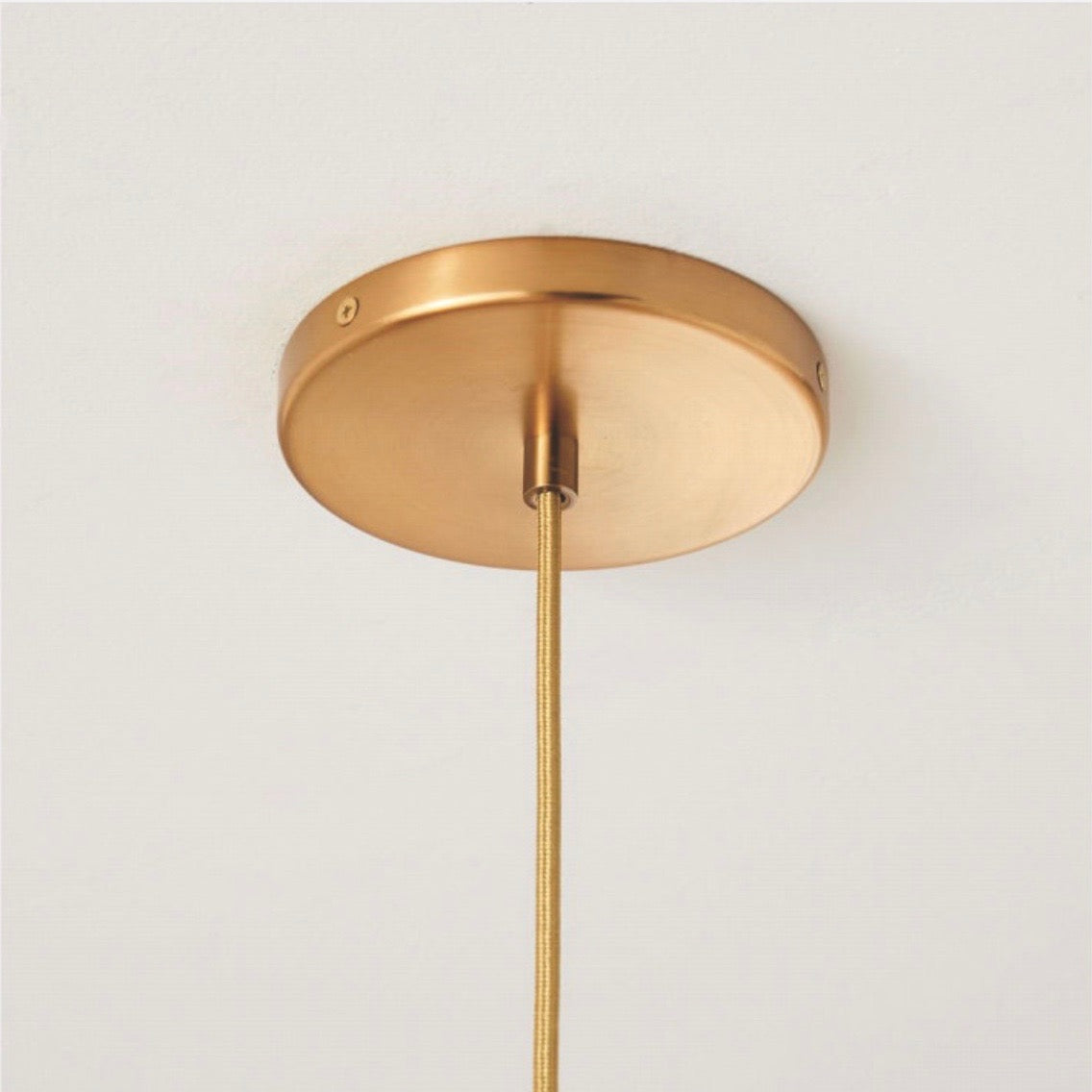 - Materials: Glass shade with matt brass fitting, matching woven synthetic cord