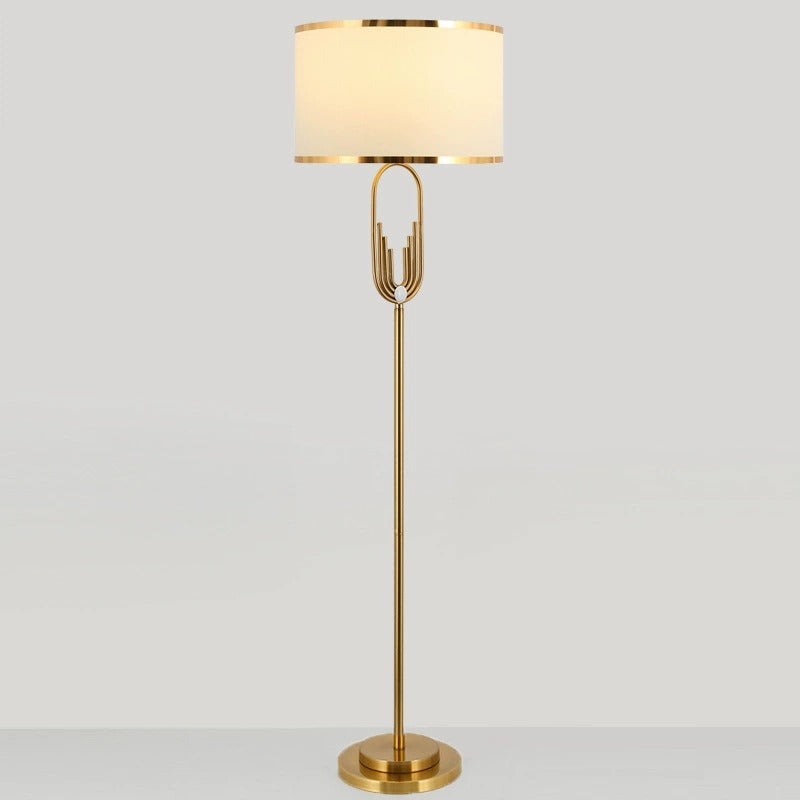 Modern Ornate Brass Floor Lamp with White Shade