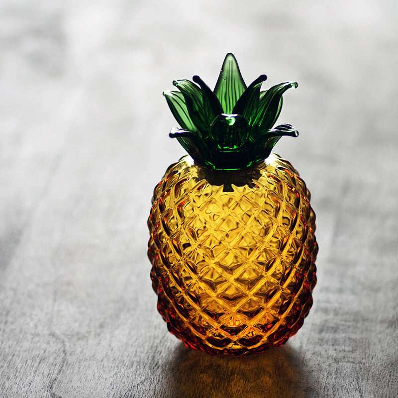 We couldn't resist these quirky pineapple inspired colored glass containers. Hand blown from gold and green stained glass gives them a lovely retro feel and they make a playful addition to eclectic inspired interiors. They can be used as a vase, but are colourful enough to stand in their own right as a decorative accent. Available in two sizes, they look great in pairs.