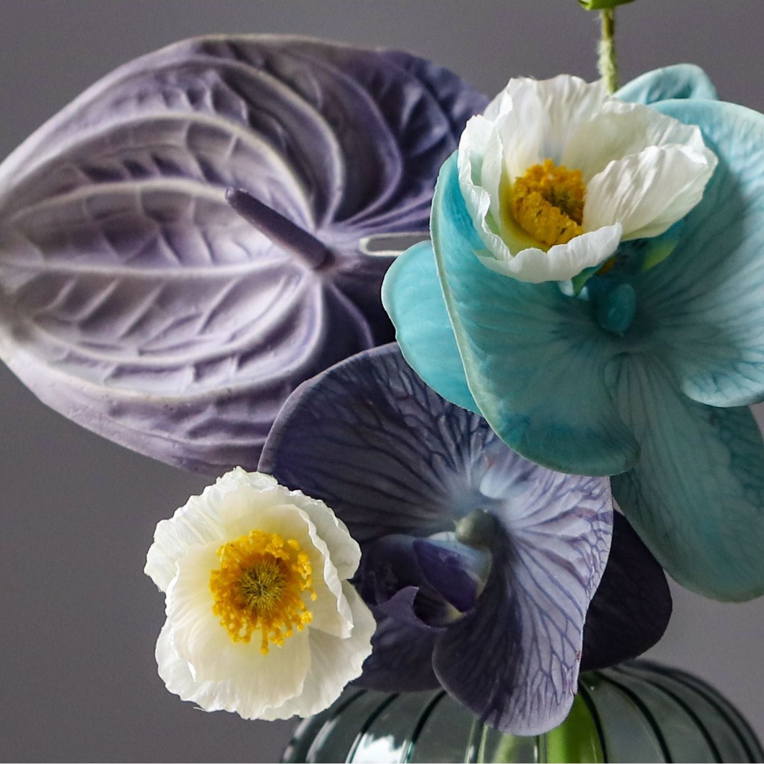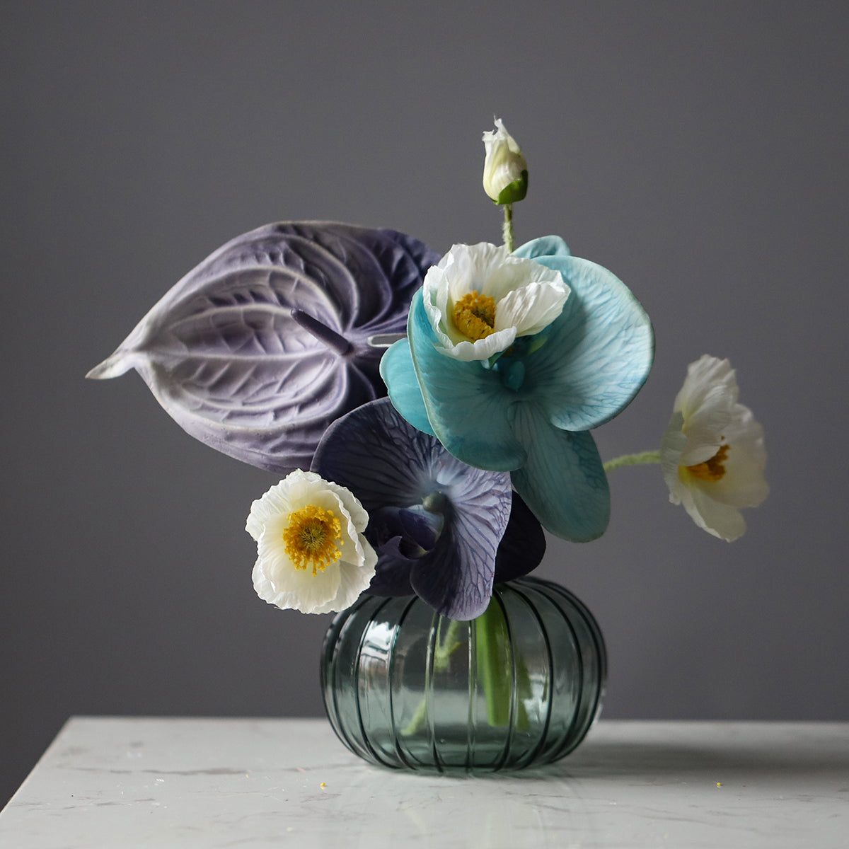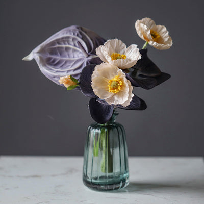 Faux Flower Bouquet with Glass Vase