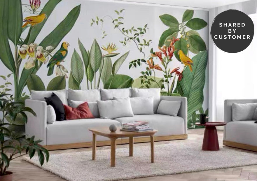 Inspired by designers like Justina Blakeny, bringing the outdoors indoors has been a huge trend in interiors of late. And what's not to love? A sense of nature inside the home breathes life and vitality into a room. We love this colorful tropical wall mural complete with birds of paradise flowers, birds (the real kind!), and exotic plants and leaves. Here's our suggestion: choose one wall in your living area and make a statement piece of this stunning wall mural. Deciding how much you need is easy - just follow the instructions below and we'll custom size to your wall and ship it free worldwide.