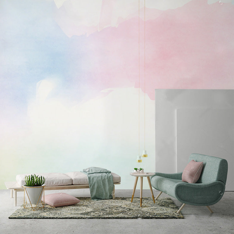 Some wallpaper and wall murals can over-power a space. This beautiful wall mural is great for spaces where a more subtle touch is needed. We love the soft hues of pastel pink, blue and a hint of green. Great for breathing some life and color into a space without being overbearing. Perfect for modern Scandinavian inspired interiors. See our instructions below to easily calculate how much you'll need to order, and we'll custom size it for you and ship for free worldwide.