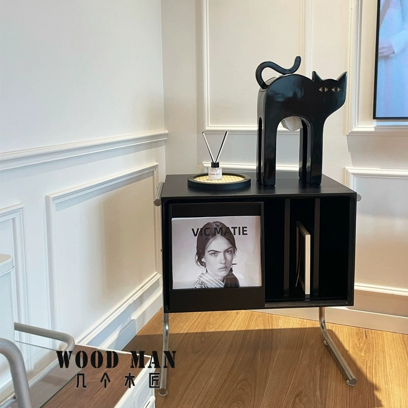 This modern looking side table cabinet looks beautiful and is perfect to showcase your favorite vinyl records and store books. Features a sliding door with a rippled glass panel and floating shelves mounted on metal legs. This Nico coffee end bookcase is available in maple, beige and white color. It will suit a Nordic homestyle.