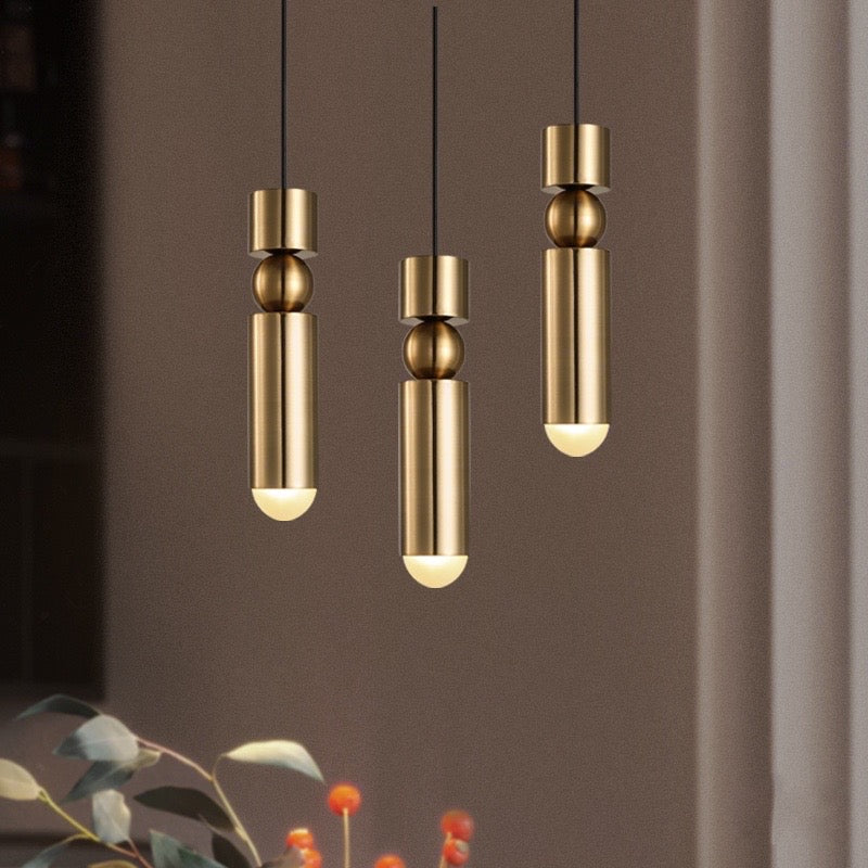 Long hanging pendant lights always bring a touch of style and elegance to a room - and especially when finished in a beautiful matt brass. These stunning modern pendants will look great as part of focal points such as bar or dining areas. Cluster together in multiples of varying height for maximum style! We seem them complimenting Eclectic an modern elegant interior themes.
